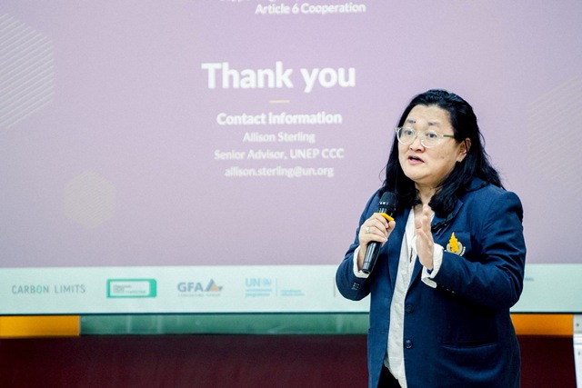 ไฮไลต์ของงานคือการบรรยายจาก Dr. Allison Jay Sterling ผู้เชี่ยวชาญด้าน Article 6 จาก UNEP Copenhagen Climate Centre และผู้แทนจาก โครงการ SPAR6C ซึ่งนำเสนอภาพรวมของกลไกตลาดคาร์บอนระหว่างประเทศ ครอบคลุมตั้งแต่ระบบซื้อขายคาร์บอนเครดิต ความโปร่งใสของตลาด ไปจนถึงศักยภาพของประเทศไทยในการก้าวสู่ห่วงโซ่อุตสาหกรรมคาร์บอนที่กำลังเติบโตทั่วโลก