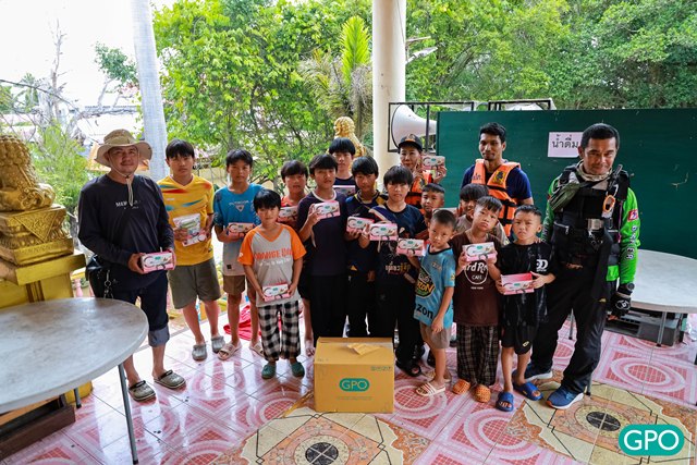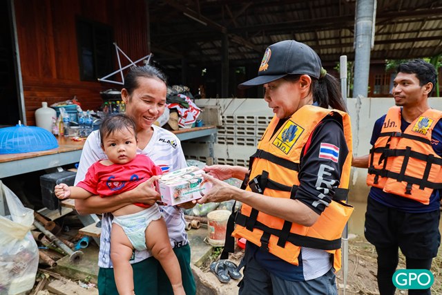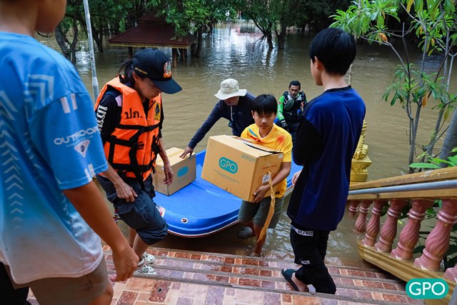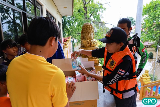 โดยการช่วยเหลือในครั้งนี้ องค์การฯ มอบชุดผู้ประสบภัย ได้แก่ ยาไมโครนาโซน 5 กรัม, ยาเพรดนิโซโลนครีม 5 กรัม, ยาเม็ดแก้แพ้ลดน้ำมูกคลอร์เฟนิรามิน, ยาเม็ดพาราเซตามอล 500 มก., ผงน้ำตาลเกลือแร่, แอลกอฮอล์เช็ดแผล, สำลี, และพลาสเตอร์ องค์การเภสัชกรรมพร้อมสนับสนุนการดูแลสุขภาพประชาชนในทุกสถานการณ์ โดยเฉพาะช่วงน้ำท่วมที่มีความเสี่ยงต่อโรคติดเชื้อ การขาดยารักษาโรค และปัญหาสุขภาพในกลุ่มเด็ก ผู้สูงอายุ และผู้ป่วยโรคเรื้อรัง จะยังคงจัดส่งยาและเวชภัณฑ์เพิ่มเติมอย่างต่อเนื่องจนกว่าสถานการณ์จะคลี่คลาย