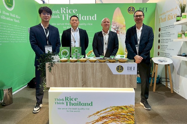 ในปีนี้ นับเป็นครั้งแรกที่ กรมฯ ได้เข้าร่วมจัดกิจกรรมส่งเสริมและประชาสัมพันธ์ภาพลักษณ์ข้าวไทยในงานดังกล่าว โดยภายในคูหาของกรมฯ ได้จัดนิทรรศการให้ความรู้เกี่ยวกับความหลากหลายของข้าวไทยควบคู่กับเครื่องหมายรับรองข้าวหอมมะลิไทย การจัดแสดงตัวอย่างข้าวไทยชนิดต่างๆ เช่น ข้าวหอมมะลิไทย ข้าวนึ่ง ข้าวขาว ข้าวเหนียว ข้าวเพื่อสุขภาพและข้าวคุณลักษณะพิเศษที่มีคุณค่าทางโภชนาการสูง เช่น ข้าวไรซ์เบอร์รี่ ข้าวสังข์หยด และข้าวหอมนิล ให้เป็นที่รู้จักมากขึ้น ตอบข้อซักถามจากผู้เข้าชมคูหา ซึ่งได้รับการตอบรับเป็นอย่างดีจากทั้งผู้บริโภค ผู้ประกอบการร้านอาหาร ผู้จัดจำหน่าย และผู้นำเข้าขาว ตลอดจนผู้เข้าชมจากนานาประเทศ โดยมีผู้เยี่ยมชมคูหาข้าวไทยกว่า 1,000 คน จากประเทศต่าง ๆ อาทิ ซาอุดีอาระเบีย อินเดีย บังกลาเทศ ญี่ปุ่น จีน ซูดาน ไนจีเรีย และเซเนกัล ตลอดระยะเวลาการจัดงานทั้ง 4 วัน โดยผู้เข้าร่วมงานให้ความสนใจและชื่นชอบในข้าวคุณลักษณะพิเศษต่างๆ เช่น ข้าวไรซ์เบอร์รี่ ข้าวหอมนิล และข้าวสังข์หยดที่มีสีสันแปลกตาและโดดเด่น ซึ่งผู้แทนกรมฯ ได้ให้ข้อมูลเกี่ยวกับข้าวคุณลักษณะพิเศษดังกล่าวว่าเป็นข้าวที่มีสีสันสวยงามตามธรรมชาติอีกทั้งยังโดดเด่นด้วยคุณค่าทางโภชนาการสูง ประกอบไปด้วย สารต้านอนุมูลอิสระประสิทธิภาพสูง อาทิ แอนโทไซยานิน (Anthocyanin) และโพลีฟีนอล (Polyphenol) ในปริมาณที่มากกว่าข้าวขาวทั่วไป นอกจากนี้ ข้าวเหล่านี้ยังอุดมไปด้วยเส้นใยอาหาร วิตามินบี และธาตุเหล็ก ซึ่งช่วยในการบำรุงโลหิตและดีต่อระบบขับถ่าย คุณสมบัติเหล่านี้จึงสอดคล้องกับความต้องการของผู้บริโภคในปัจจุบันที่ให้ความสำคัญกับการดูแลสุขภาพมากขึ้น