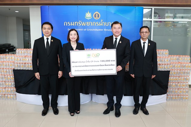 วันที่ 18 พฤศจิกายน 2568 เวลา 09.30 น. ณ ลานอเนกประสงค์ ชั้น 2 กรมทรัพยากรน้ำบาดาล นายภาดล ถาวรกฤชรัตน์ อธิบดีกรมทรัพยากรน้ำบาดาล เป็นผู้แทนกระทรวงทรัพยากรธรรมชาติและสิ่งแวดล้อม นำคณะผู้บริหารกรมทรัพยากรน้ำบาดาล ให้การต้อนรับ คุณพิมลรัตน์ รีพัฒนาวิจิตรกุล ประธานผู้บริหารทรัพยากรบุคคล เครือเจริญโภคภัณฑ์ และคุณจอมกิตติ ศิริกุล ผู้บริหารสูงสุดด้านพัฒนาความยั่งยืนภาครัฐและกิจการสัมพันธ์ เครือเจริญโภคภัณฑ์ ในโอกาสส่งมอบน้ำดื่มสะอาดบรรจุขวด ขนาด 350 มิลลิลิตร จำนวน 100,000 ขวด ให้แก่กระทรวงทรัพยากรธรรมชาติและสิ่งแวดล้อม