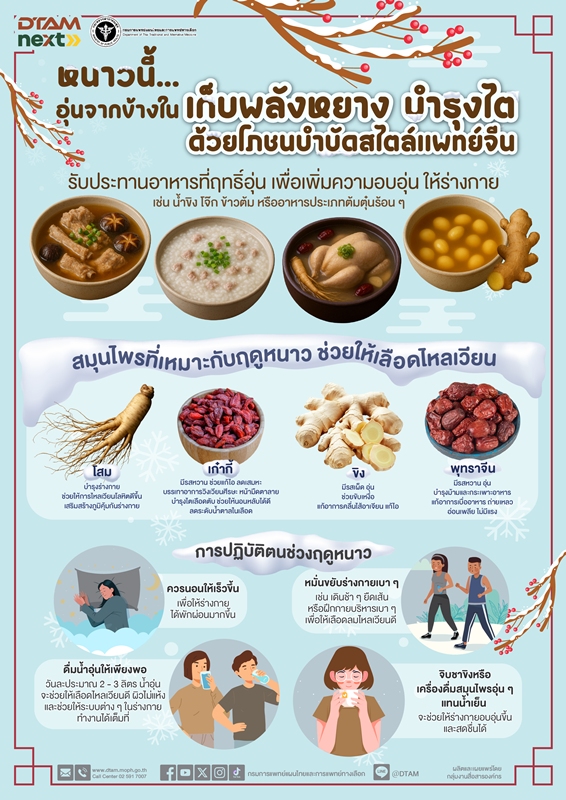 กรมการแพทย์แผนไทยฯ แนะดูแลสุขภาพรับ “ฤดูหนาว” ด้วยศาสตร์แพทย์แผนจีน เน้นโภชนบำบัดเสริมภูมิคุ้มกัน