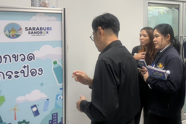 กระทรวงการอุดมศึกษา วิทยาศาสตร์ วิจัยและนวัตกรรม (อว.) นำโดย ดร.เรวดี อนุวัฒนา ผู้อำนวยการ ศูนย์เชี่ยวชาญนวัตกรรมวัสดุ (ศนว.) สถาบันวิจัยวิทยาศาสตร์และเทคโนโลยีแห่งประเทศไทย (วว.) และคณะนักวิจัย ศนว. ศูนย์เชี่ยวชาญนวัตกรรมหุ่นยนต์และเครื่องจักรกลอัตโนมัติ (ศนย.) และกองบริการธุรกิจและนวัตกรรม สำนักจัดการเทคโนโลยีและนวัตกรรม บรรยายถ่ายทอดความรู้และร่วมจัดนิทรรศการ “การดำเนินงานตาลเดี่ยวโมเดลกับการขับเคลื่อนเมืองสระบุรีคาร์บอนต่ำ (Saraburi Sandbox)” พร้อมนำเสนอองค์ความรู้ด้านเทคโนโลยีจัดการของเสีย การลดก๊าซเรือนกระจก และนวัตกรรมวัสดุเพื่อสิ่งแวดล้อม ที่เป็นส่วนสำคัญในการพัฒนา “สระบุรีแซนด์บ็อกซ์” ให้เป็นเมืองคาร์บอนต่ำแห่งแรกของประเทศไทย