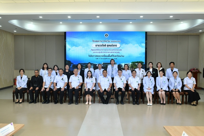 วันที่ 19 พฤศจิกายน 2568 นายวรโชติ สุคนธ์ขจร รัฐมนตรีช่วยว่าการกระทรวงสาธารณสุข ติดตามการบริหารจัดการหลังสถานการณ์อุทกภัย และการดำเนินงานตามนโยบายกระทรวงสาธารณสุข โรงพยาบาลน่าน โดยมี นายบรรจง ขุนเพชร รองผู้ว่าราชการจังหวัดน่าน นพ.ปิยะ ศิริลักษณ์ ผู้ตรวจราชการกระทรวงสาธารณสุขเขตสุขภาพที่ 1 นพ.ภุชงค์ ชื่นชม นายแพทย์สาธารณสุขจังหวัดน่าน นพ.กนก พิพัฒน์เวช ผู้อำนวยการโรงพยาบาลน่าน และบุคลากร ให้การต้อนรับ