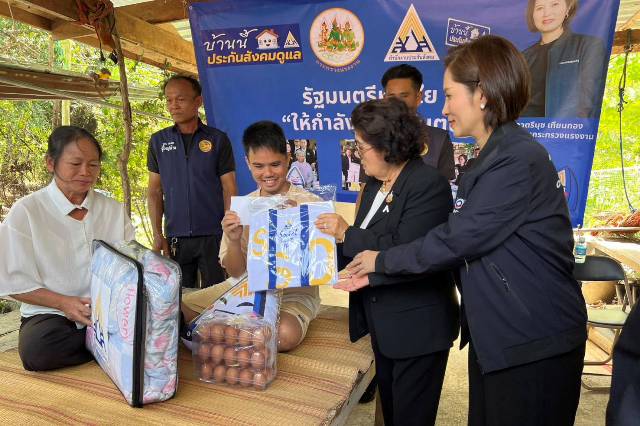 หลังจากนั้น นางสาวตรีนุช เทียนทอง พร้อมคณะได้ลงพื้นที่ตรวจเยี่ยมผู้ประกันตนที่อยู่ในภาวะทุพพลภาพจำนวน 2 ราย โดยรัฐมนตรีว่าการกระทรวงแรงงานกล่าวว่า การลงพื้นที่ครั้งนี้มีความสำคัญอย่างยิ่ง เพราะทำให้เราได้เห็นความเป็นอยู่จริงของผู้ประกันตนที่ประสบความยากลำบาก สำนักงานประกันสังคมได้ดูแลผู้ประกันตนทั้งสองรายอย่างต่อเนื่อง และตนขอยืนยันว่ากระทรวงแรงงานจะไม่ทิ้งใครไว้ข้างหลัง สำหรับผู้ประกันตนรายแรก นายที เท้าเลา อายุ 55 ปี ผู้ประกันตนมาตรา 33 ทุพพลภาพจากอุบัติเหตุจราจรและโรคไตวายเรื้อรังระยะสุดท้าย ทำให้ต้องใช้รถเข็นและสูญเสียสมรรถภาพในการทำงานร้อยละ 50 ได้รับสิทธิเป็นผู้ทุพพลภาพตั้งแต่ปี 2543 และได้รับเงินทดแทนการขาดรายได้เดือนละ 2,672.20 บาทตลอดชีวิต ส่วนรายที่สอง นายธวัชชัย แม่นปืน อายุ 29 ปี ผู้ประกันตนมาตรา 33 ประสบอุบัติเหตุจราจรจนได้รับบาดเจ็บทางสมอง สูญเสียสมรรถภาพในการทำงานร้อยละ 50 ได้รับสิทธิเป็นผู้ทุพพลภาพตั้งแต่ปี 2562 และได้รับเงินทดแทนการขาดรายได้เดือนละ 4,594.20 บาทตลอดชีวิต