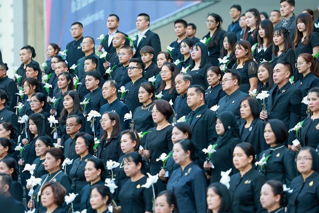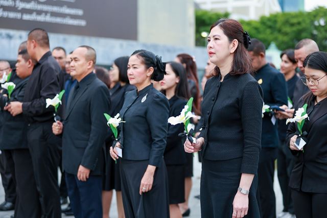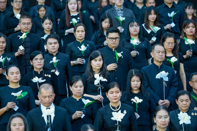 โอกาสนี้ นายประสพ เรียงเงิน ปลัดกระทรวงวัฒนธรรม นำผู้เข้าร่วมงานถือ “ดอกไม้ปณิธานความดี” และยืนสงบนิ่งเป็นเวลา 93 วินาที เพื่อน้อมรำลึกในพระมหากรุณาธิคุณของสมเด็จพระนางเจ้าสิริกิติ์ พระบรมราชินีนาถ พระบรมราชชนนีพันปีหลวง “อัคราภิรักษศิลปิน” พระผู้เสด็จสู่สวรรคาลัย จากนั้นนายธนิสร์ ศรีกลิ่นดี ศิลปินแห่งชาติ สาขาศิลปะการแสดง (ดนตรีไทยสากล) ประจำปี พ.ศ. 2559 เป่าขลุ่ยบทเพลงแสดงความอาลัย และนางชมัยภร บางคมบาง ศิลปินแห่งชาติ สาขาวรรณศิลป์ ประจำปี พ.ศ. 2557 กล่าวบทประพันธ์แสดงความอาลัย