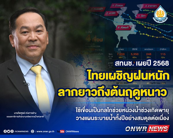 นายไพฑูรย์ เก่งการช่าง รองเลขาธิการสำนักงานทรัพยากรน้ำแห่งชาติ (สทนช.) เปิดเผยว่า สถานการณ์ในปี 2568 พี่น้องประชาชนหลายจังหวัด โดยเฉพาะในพื้นที่ลุ่มน้ำเจ้าพระยา เผชิญกับสถานการณ์น้ำท่วมที่ยาวนานกว่าปกติ ส่งผลกระทบต่อการดำรงชีวิต บ้านเรือน และทรัพย์สิน ซึ่งรัฐบาลได้สั่งการให้ทุกหน่วยงานที่เกี่ยวข้องเร่งแก้ไขปัญหาอย่างต่อเนื่อง เพื่อบรรเทาผลกระทบและให้ระดับน้ำกลับเข้าสู่ภาวะปกติโดยเร็วที่สุด โดยในปีนี้ แม้ว่าหน่วยงานได้มีการเตรียมพร้อมระบายน้ำจากเขื่อนใหญ่ล่วงหน้าตั้งแต่เดือนมกราคม 2568 โดยปรับเป้าหมายให้เขื่อนมีปริมาณน้ำในช่วงสิ้นสุดฤดูฝน ร้อยละ 80 ของความจุเก็บกัก จากเป้าหมายเดิมที่มุ่งเก็บน้ำให้เต็มความจุ เพื่อเป็นแนวทางในการเพิ่มช่องว่างรองรับน้ำของเขื่อนให้มากขึ้น และยังคงมีการทยอยระบายน้ำในช่วงระหว่างฤดูอย่างต่อเนื่อง อย่างไรก็ตาม สภาพอากาศแปรปรวนในปีนี้ ทำให้ไทยได้รับอิทธิพลทางอ้อมจากพายุถึง 6 ลูก ได้แก่ พายุวิภา คาจิกิ หนองฟ้า ตาปะฮ์ รากาซา และบัวลอย ส่งผลให้ร่องความกดอากาศและหย่อมความกดอากาศต่ำมีกำลังแรง ทำให้มีปริมาณฝนตกเป็นจำนวนมากตลอดฤดู และมีน้ำไหลเข้าสะสมในเขื่อนอย่างต่อเนื่อง ประกอบกับการระบายน้ำของเขื่อนจำเป็นต้องประเมินสถานการณ์ท้ายน้ำควบคู่กันไป ในหลายช่วงเวลาจึงจำเป็นต้องมีการลดการระบายน้ำเพื่อช่วยหน่วงน้ำไว้ในเขื่อน ไม่ให้ไหลไปสมทบในพื้นที่ที่มีระดับน้ำสูงอยู่แล้ว ทำให้เขื่อนขนาดใหญ่หลายแห่งมีปริมาณน้ำจำนวนมากในช่วงปลายฤดูฝน โดยเฉพาะเขื่อนภูมิพลที่ต้องระบายน้ำในอัตรา 30 – 55 ล้านลูกบาศก์เมตร (ลบ.ม.) ต่อวัน เพื่อรักษาความมั่นคงของเขื่อนและเพิ่มพื้นที่รองรับน้ำ ในส่วนของเขื่อนสิริกิติ์ เขื่อนแควน้อยบำรุงแดน และเขื่อนป่าสักชลสิทธิ์ ยังคงสามารถรักษาอัตราการระบายอย่างคงที่ เพื่อช่วยลดปริมาณน้ำที่จะไหลลงสู่แม่น้ำเจ้าพระยาตอนล่าง โดยน้ำจากเขื่อนในพื้นที่ตอนบนของประเทศ คิดเป็นประมาณร้อยละ 25 ของน้ำท่าที่ไหลจากเขื่อนเจ้าพระยา