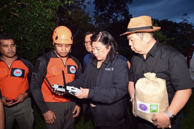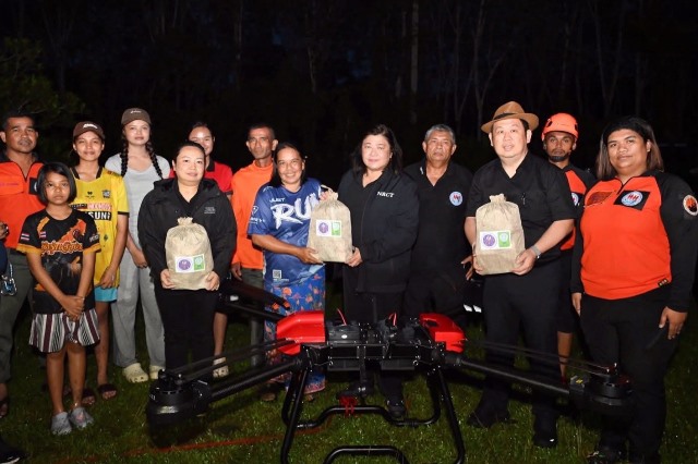 การลงพื้นที่ในครั้งนี้ เป็นการติดตามการปฏิบัติงานของ“ศูนย์ศึกษาและพัฒนาระบบการใช้โดรนเพื่อสนับสนุนเมื่อเกิดภัยพิบัติ” ที่ วช. ร่วมกับ สมาคมกีฬาเครื่องบินจำลองและวิทยุบังคับ จัดตั้งขึ้น ณ ศูนย์เครือข่ายเตือนภัยพิบัติชุมชนเพื่อนพึ่ง (ภาฯ) ตำบลเกาะขันธ์ จังหวัดนครศรีธรรมราช และ ศูนย์การจัดการภัยพิบัติ เพื่อนพึ่ง(ภาฯ) ลุ่มน้ำทะเลสาบสงขลาตอนบน ต.บ้านขาว อ.ระโนด จ.สงขลา โดยมี จ่าโทโกเมศร์ ทองบุญชู ประธานเครือข่ายการจัดการภัยพิบัติจากธรรมชาติ จ.นครศรีธรรมราช นำเสนอเหตุการณ์อุทกภัยในจ.นครศรีธรรมราช และ จ.สงขลา พร้อมการปฏิบัติการในการนำนวัตกรรมโดรนที่ วช.ให้การสนับสนุนไปช่วยเหลือพี่น้องประชาชนในพื้นที่ประสบอุทกภัยในภาคใต้