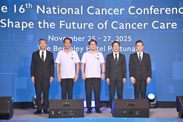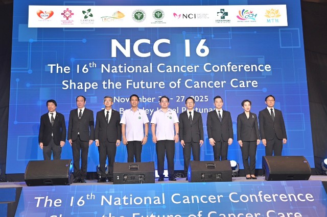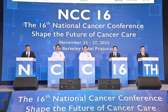 วันที่ 25 พฤศจิกายน 2568 ที่ โรงแรมเบอร์เคลีย์ ประตูน้ำ กรุงเทพฯ นายพัฒนา พร้อมพัฒน์ รัฐมนตรีว่าการกระทรวงสาธารณสุข เปิดการประชุมวิชาการโรคมะเร็งแห่งชาติ ครั้งที่ 16 (NCC16) ภายใต้หัวข้อ “SHAPE THE FUTURE OF CANCER CARE” จัดขึ้นระหว่างวันที่ 25 – 27 พฤศจิกายน 2568 โดยมี นายแพทย์สมฤกษ์ จึงสมาน ปลัดกระทรวงสาธารณสุข นายแพทย์ณัฐพงศ์ วงศ์วิวัฒน์ อธิบดีกรมการแพทย์ เรืออากาศเอก นายแพทย์สมชาย ธนะสิทธิชัย ผู้อำนวยการสถาบันมะเร็งแห่งชาติ คณะผู้บริหาร แพทย์ บุคลากรทางการแพทย์และสาธารณสุข นักวิชาการ และผู้สนใจจากหน่วยงานต่างๆ ทั้งภาครัฐและเอกชน รวมทั้งต่างประเทศ เข้าร่วมกว่า 880 คน นายพัฒนากล่าวว่า การต่อสู้กับโรคมะเร็งต้องบูรณาการความร่วมมือจากทุกภาคส่วน ภายใต้ “แผนยุทธศาสตร์การควบคุมโรคมะเร็งแห่งชาติ (National Cancer Control Program: NCCP)” ซึ่งเป็นกรอบทิศทางในการดำเนินงาน ทั้งการส่งเสริมป้องกัน คัดกรอง วินิจฉัย รักษา ฟื้นฟู และดูแลระยะท้ายอย่างครบวงจร เพื่อให้คนไทยทุกคนเข้าถึงบริการที่เป็นมาตรฐานและมีประสิทธิภาพอย่างยั่งยืน โดยกระทรวงสาธารณสุข กระทรวงแรงงาน และกระทรวงการคลัง ได้พัฒนาระบบบริการสุขภาพ “โรคมะเร็งรักษาทุกที่ (Cancer Anywhere)” ครอบคลุมทั้งสิทธิบัตรทอง (Cancer anywhere) สิทธิประกันสังคม (โครงการ SSO Cancer Care) และสิทธิข้าราชการ ทำให้ผู้ป่วยเข้าถึงการรักษาโรคมะเร็งที่มีคุณภาพแบบครบวงจร