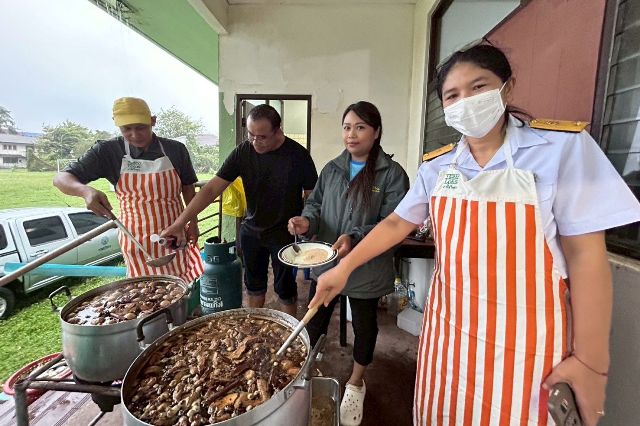 ในส่วนการสนับสนุนสิ่งของช่วยเหลือผู้ประสบภัย ในนามครอบครัวกรมประมง นำโดย คณะผู้บริหาร ข้าราชการ และเจ้าหน้าที่กรมประมง จากส่วนกลาง ได้ร่วมกันบรรจุถุงยังชีพ รวมจำนวน 500 ชุด โดยถุงยังชีพ ประกอบด้วย สิ่งของจำเป็นพื้นฐานต่อการดำรงชีพ อาทิ น้ำดื่ม อาหารแห้ง บะหมี่กึ่งสําเร็จรูป อาหารกระป๋อง ฯลฯ เพื่อส่งมอบให้ประชาชนที่ได้รับผลกระทบจากน้ำท่วม นอกจากนี้ สำนักงานประมงจังหวัดสงขลา ยังได้บูรณาการร่วมกับหน่วยงานในพื้นที่ เปิด “ครัวประมงอิ่มบุญ ผู้ประสบภัยอิ่มเอม” เพื่อจัดเตรียมอาหารพร้อมน้ำดื่มให้กับประชาชนผู้ประสบอุทกภัย สำหรับบรรเทาความเดือดร้อนในเบื้องต้นอีกด้วย