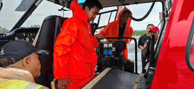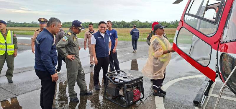 และเมื่อวานนี้ ยังได้รับการประสานเพิ่มเติมจาก ท่านพัฒนา พร้อมพัฒน์ รัฐมนตรีว่าการกระทรวงสาธารณสุข ให้ประสานรองผู้ว่าการ การไฟฟ้าส่วนภูมิภาค (กฟภ.) ท่านรองฯ พีระพล ปูรณะโชติ เพื่อส่ง ฮ.ทส. ไปช่วยลำเลียงเครื่องกำเนิดไฟฟ้า (Generator) และช่างไฟฟ้า จากกองทัพเรือ ไปใช้ซ่อมไฟฟ้าที่ รพ.หาดใหญ่ ซึ่งผมได้สั่งการไปยังศูนย์ปฏิบัติการบินของ ทส. ให้ส่ง ฮ. ที่ประจำการอยู่ในพื้นที่เข้าช่วยเหลือภารกิจดังกล่าวเป็นการเร่งด่วน โดย ฮ. ของ ทส. ได้รับข้อสั่งการโดยทันที และได้ดำเนินการบินขนลำเลียงอุปกรณ์และช่างไฟฟ้า เป็นจำนวน 2 เที่ยวบิน สามารถขนย้ายอุปกรณ์และช่างไฟฟ้าได้เป็นผลสำเร็จ