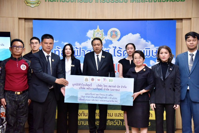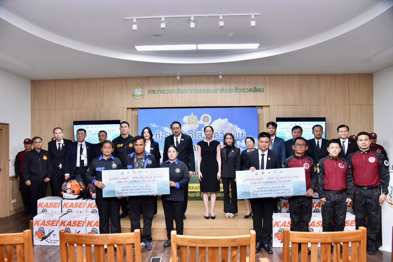 วันที่ 26 พฤศจิกายน 2568 เวลา 14.00 น. นายสุชาติ ชมกลิ่น รองนายกรัฐมนตรีและรัฐมนตรีว่าการกระทรวงทรัพยากรธรรมชาติและสิ่งแวดล้อม พร้อมด้วย ดร.ชญานันท์ ภักดีจิตต์ ปลัดกระทรวงทรัพยากรธรรมชาติและสิ่งแวดล้อม ร่วมเป็นสักขีพยานในพิธีมอบเครื่องเป่าลม จำนวน 50 เครื่อง จากมูลนิธิหัวใจบริสุทธิ์ บริษัท ไทย สมายด์ บัส จำกัด เเละบริษัทพลังงานบริสุทธิ์ (จํากัด) มหาชน ให้แก่ เครือข่ายสภาลมหายใจ จังหวัดกาญจนบุรี และหน่วยงานควบคุมไฟป่าในพื้นที่ป่ารอบเขื่อนศรีนครินทร์ เพื่อเตรียมความพร้อมและเสริมศักยภาพในการป้องกันและควบคุมไฟป่าอย่างมีประสิทธิภาพสูงสุด ในการควบคุมและป้องกันสถานการณ์ไฟป่าในปี 2569 ณ ห้องแถลงข่าว ชั้น 1 กระทรวงทรัพยากรธรรมชาติและสิ่งแวดล้อม