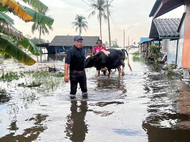นายสัตวแพทย์สมชวน รัตนมังคลานนท์ อธิบดีกรมปศุสัตว์ เปิดเผยว่า ได้รับข้อสั่งการจากร้อยเอก ธรรมนัส พรหมเผ่า รองนายกรัฐมนตรี และรัฐมนตรีว่าการกระทรวงเกษตรและสหกรณ์ ให้เร่งช่วยเหลือเกษตรกรผู้เลี้ยงสัตว์ในพื้นที่ประสบอุทกภัยใน 9 จังหวัด ได้แก่ ชุมพร สุราษฎร์ธานี นครศรีธรรมราช พัทลุง สตูล ปัตตานี สงขลา ตรัง และนราธิวาส โดยมีสัตว์เลี้ยงในพื้นที่น้ำท่วมรวมทั้งสิ้น 10,961,826 ตัว ประกอบด้วย โค 335,382 ตัว กระบือ 7,354 ตัว สุกร 265,146 ตัว แพะและแกะ 181,057 ตัว และสัตว์ปีก 10,172,887 ตัว ขณะที่แปลงหญ้าเลี้ยงสัตว์เสียหายรวม 7,721.60 ไร่