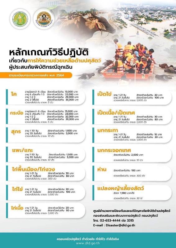ทั้งนี้ กรมปศุสัตว์ขอให้เกษตรกรที่ได้รับผลกระทบมั่นใจว่า หน่วยงานในสังกัดกระทรวงเกษตรและสหกรณ์ พร้อมดำเนินการช่วยเหลืออย่างเต็มที่ โดยสามารถแจ้งความประสงค์ขอรับความช่วยเหลือได้ที่สำนักงานปศุสัตว์อำเภอ สำนักงานปศุสัตว์จังหวัด หรือผ่านแอปพลิเคชัน DLD 4.0 ได้ตลอด 24 ชั่วโมง