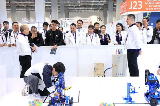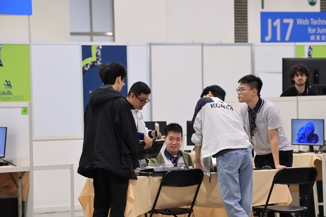 บรรยากาศการแข่งขันฝีมือแรงงานเอเชีย ครั้งที่ 3 WorldSkills Asia Taipei 2025 ณ ศูนย์นิทรรศการไทเปหนานกัง เขตหนานกัง ไทเป ไต้หวัน เข้าวันแข่งขันวันที่สอง (28 พฤศจิกายน 2568) การแข่งขันในทุกสาขายังคงดำเนินไปอย่างเข้มข้น สำหรับตัวแทนเยาวชนไทยทุกคน ต่างก็พยายามใช้ความรู้และประสบการณ์ ทุ่มเททำผลงานอย่างเต็มความสามารถ โดยรองอธิบดีกรมพัฒนาฝีมือแรงงาน และคณะผู้บริหาร เยี่ยมชมและให้กำลังใจติดขอบสนาม