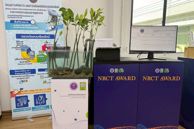 สำหรับผลงานที่กรมประมงได้รับรางวัลประจำปีนี้ คือ “เรื่องนวัตกรรมระบบเตือนภัยการเพาะเลี้ยงสัตว์น้ำชายฝั่งด้วยเทคโนโลยีอินเทอร์เน็ตของสรรพสิ่งและปัญญาประดิษฐ์”  โดยใช้เทคโนโลยีอินเทอร์เน็ตแห่งสรรพสิ่ง (Internet of Things: IoT) เชื่อมต่ออุปกรณ์ผ่านอินเทอร์เน็ตสื่อสารแลกเปลี่ยนข้อมูลร่วมกับระบบตรวจจับต่าง ๆ (Sensors) เพื่อวัดค่าพารามิเตอร์ที่มีผลต่อสัตว์น้ำที่เลี้ยง และส่งต่อข้อมูลให้กับเทคโนโลยีปัญญาประดิษฐ์ (Artificial Intelligence : AI) มาเรียนรู้ วิเคราะห์ข้อมูล ทำให้สามารถคาดการณ์พยากรณ์สภาพแวดล้อมและคุณภาพน้ำที่มีผลกระทบต่อการเพาะเลี้ยงสัตว์น้ำของเกษตรกร ทั้งกลุ่มผู้เพาะเลี้ยงสัตว์น้ำในกระชัง และกลุ่มผู้เพาะเลี้ยงหอยทะเล พร้อมทั้งแสดงผลการแจ้งเตือนภัยแก่เกษตรกรผู้เพาะเลี้ยงสัตว์น้ำ ชาวประมง เจ้าหน้าที่ของรัฐ ในรูปแบบของเว็บแอปพลิเคชัน (Web application) และข้อความสั้น (SMS) ทำให้สามารถรับมือ ป้องกัน หรือหาทางจัดการกับผลผลิตให้ทันต่อสถานการณ์เพื่อลดความเสี่ยงและความเสียหายนำไปสู่การเพิ่มผลผลิตได้ จากผลการดำเนินโครงการวิจัย พบว่า การติดตั้งและเก็บข้อมูลจากอุปกรณ์เซนเซอร์ทั้ง 18 ชุด ในพื้นที่จังหวัดนครศรีธรรมราช และจังหวัดสุราษฎร์ธานี ประสบความสำเร็จ โดยสามารถพยากรณ์สภาพแวดล้อมที่มีผลกระทบต่อสัตว์น้ำล่วงหน้าได้ และงานวิจัยนี้ยังได้นำมาขยายผล โดยในปีงบประมาณ พ.ศ. 2569 กรมประมงได้รับงบประมาณกว่า 26,000,000 บาท สำหรับการใช้อุปกรณ์เซนเซอร์ในบริเวณแปลงเพาะเลี้ยงสัตว์น้ำในกระชัง จำนวน 70 เซนเซอร์ และอุปกรณ์เซนเซอร์ในบริเวณแปลงเลี้ยงหอย จำนวน 70 เซนซอร์ ซึ่งเป็นการสร้างแกนนำเครือข่ายเกษตรกรอีกไม่น้อยกว่า 400 ราย ซึ่งการดำเนินงานนี้ เป็นกระบวนการทำงานเชิงรุกในการนำเทคโนโลยีดิจิทัลมาประยุกต์ใช้ในด้านประมง เพื่อช่วยเหลือเกษตรกรและประชาชนอย่างมีประสิทธิภาพ  ทั้งนี้ “รางวัล NRCT Award 2025” เป็นความภาคภูมิใจของกรมประมง และสะท้อนความมุ่งมั่นในการนำเทคโนโลยีดิจิทัล มาประยุกต์ใช้ในด้านประมง เพื่อช่วยเหลือเกษตรกร และประชาชนอย่างมีประสิทธิภาพ และยั่งยืน…ผู้ทรงคุณวุฒิฯ กล่าว