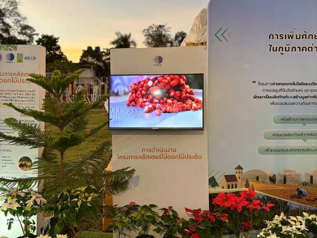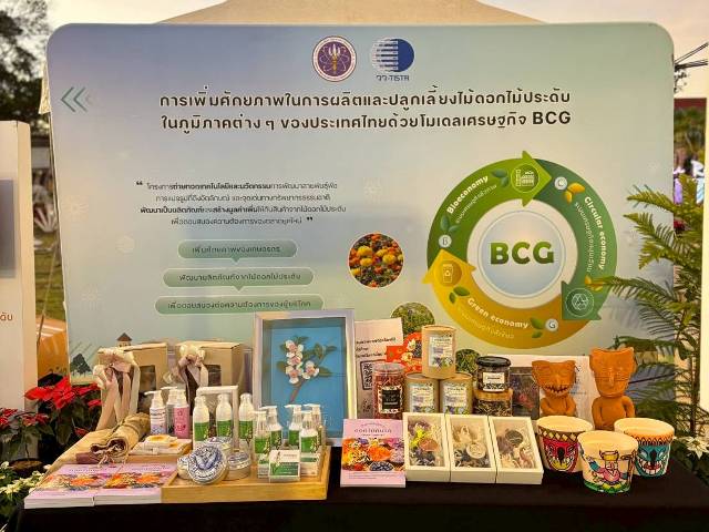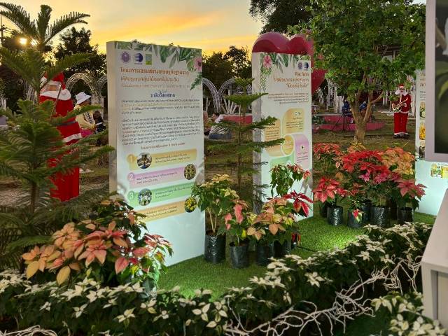 ซึ่งภายในบูธ วว. จัดแสดงผลงานในโครงการฯ อาทิ ต้นคริสต์มาสหลากสายพันธุ์ กระถางต้นไม้อัตลักษณ์จังหวัดเลย ผลิตภัณฑ์ที่แปรรูปจากไม้ดอกไม้ประดับ รวมทั้งหนังสือดอกไม้กินได้ Edible flowers ด้วย