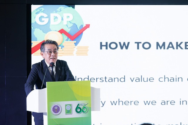 นอกจากนี้ ยังมีการเสวนานโยบายการลงทุนวิจัย เพื่อขับเคลื่อนอนาคตไทยสู่เศรษฐกิจฐานนวัตกรรม โดย ดร.สิริพร พิทยโสภณ รองผู้อำนวยการสำนักงานสภานโยบายการอุดมศึกษา วิทยาศาสตร์ วิจัยและนวัตกรรมแห่งชาติ ได้กล่าวถึง นโยบายการขับเคลื่อนประเทศสู่เศรษฐกิจฐานนวัตกรรม (Innovation-Driven Economy) โดยมีเป้าหมายคือยกระดับการพัฒนาประเทศ สร้างผู้ประกอบการฐานนวัตกรรม (IDE) และเพิ่มงบวิจัย (GERD) ผ่านมาตรการสนับสนุนและสิทธิประโยชน์ทางภาษี รศ.ดร.นพพร ลีปรีชานนท์ รองผู้อำนวยการสำนักงานคณะกรรมการส่งเสริมวิทยาศาสตร์วิจัยและนวัตกรรม กล่าวถึง แนวทางการลงทุนวิจัยและนวัตกรรมเพื่อสร้างความเข้มแข็งและยั่งยืน โดยเน้นผลักดันผลงานวิจัยสู่ SME/STARTUP/SPIN-OFF การสร้างระบบระบบนิเวศนวัตกรรม เปลี่ยนผ่านจากการให้ทุนสู่การร่วมลงทุน ผ่านมาตรการ/กลไกสำคัญ อาทิ TRIUP การจัดตั้ง University Holding Company (UHC) ให้สถาบันอุดมศึกษาสามารถนำผลงานวิจัยไปร่วมลงทุนและใช้ประโยชน์เชิงพาณิชย์ได้อย่างมีประสิทธิภาพ และ ดร.วิบูลย์ รักสาสน์เจริญผล รองเลขาธิการสภาอุตสาหกรรมแห่งประเทศไทย กล่าวถึง ความเชื่อมโยงระหว่างนวัตกรรมกับ GDP โดยเน้นย้ำความสำคัญของการยกระดับเทคโนโลยีจากระดับ “Incremental” เป็น “Disruptive” และกลยุทธ์การฉีดนวัตกรรมเข้าไปในห่วงโซ่คุณค่า (Value Chain) เพื่อสร้างผลิตภัณฑ์ที่มีมูลค่าและราคาสูงขึ้น