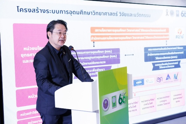ดร.วิภารัตน์ ดีอ่อง ผู้อำนวยการสำนักงานการวิจัยแห่งชาติ กล่าวว่า วช. แถลงผลพยากรณ์ค่าใช้จ่ายและบุคลากรด้านการวิจัยและพัฒนา (R&D) ปี 2567–2568 เป็นตัวชี้วัดสำคัญใช้วัดขีดความสามารถด้านโครงสร้างพื้นฐานทางวิทยาศาสตร์ของสถาบัน IMD โดยปี 2567 ประเทศไทยมีค่าใช้จ่าย R&D (GERD) 172,263 ล้านบาท เติบโตเพิ่มขึ้นร้อยละ 2.47 GERD/GDP ร้อยละ 0.93 ปี 2568 ค่าใช้จ่าย 174,158 ล้านบาท เติบโตร้อยละ 1.10 GERD/GDP ร้อยละ 0.92 ปัจจัยที่ส่งผลต่อค่าใช้จ่ายสำคัญคือบุคลากรวิจัยและ GDP ปี 2567 บุคลากรเพิ่มร้อยละ 8.42 ปี 2568 ลดไม่มากร้อยละ 0.66 คาดว่าลดลงในกลุ่มเกษียณอายุ ส่งผลให้ค่าใช้จ่ายยังเพิ่มขึ้น ค่าใช้จ่าย R&D ส่วนใหญ่ในภาคเอกชนร้อยละ 66 ภาคการผลิตยังคงอยู่ในสัดส่วนสูงสุด (ร้อยละ 48) ถัดมาภาคบริการ (ร้อยละ 35) และค้าส่งค้าปลีก (ร้อยละ 17) SMEs มีแนวโน้มลงทุนวิจัยเพิ่มและมีความต้องการมาตรการสนับสนุนจากรัฐ การเข้าถึงมาตรการรัฐที่สะดวกไม่ซับซ้อน การผลิตเน้นลงทุนในสาขาอาหาร เคมีภัณฑ์ ผลิตภัณฑ์การกลั่นปิโตรเลียม อุปกรณ์ไฟฟ้า คอมพิวเตอร์อิเล็กทรอนิกส์ ภาคบริการเน้นการเงิน การบริหาร และสุขภาพ ค่าใช้จ่ายภาครัฐเพิ่มตาม GDP ปี 2567 ร้อยละ 4.42 ปี 2568 ร้อยละ 2.21 งานวิจัยภาครัฐเน้นด้านการแพทย์และสุขภาพ การบริการและท่องเที่ยวเชิงสร้างสรรค์ ด้านไฟฟ้าและอิเล็กทรอนิกส์ หุ่นยนต์และระบบอัตโนมัติ การพัฒนหลักสูตรนวัตกรรมการเรียนรู้ การผลิตและแปรรูปเกษตร อาหาร การบริหารจัดการน้ำ การจัดการฝุ่น PM 2.5 ส่วนบุคลากร R&D รายหัว ปี 2567 มี 239,202 คน เพิ่มจากปีก่อนร้อยละ 8.42 ปี 2568 ลดเหลือ 237,615 คน นักวิจัยส่วนใหญ่ร้อยละ 87 อายุ 25 – 54 ปี โดย อว. มีนโยบายสนับสนุนการผลิตบุคลากรวิจัยให้ตอบโจทย์ และ วช.ให้ควความสำคัญการพัฒนาเส้นทางอาชีพนักวิจัยและนวัตกรรมให้บรรลุเป้าหมาย 10,800 คน ปี 2566–2570 สนับสนุนขีดความสามารถแข่งขันและเศรษฐกิจ สังคม สิ่งแวดล้อม