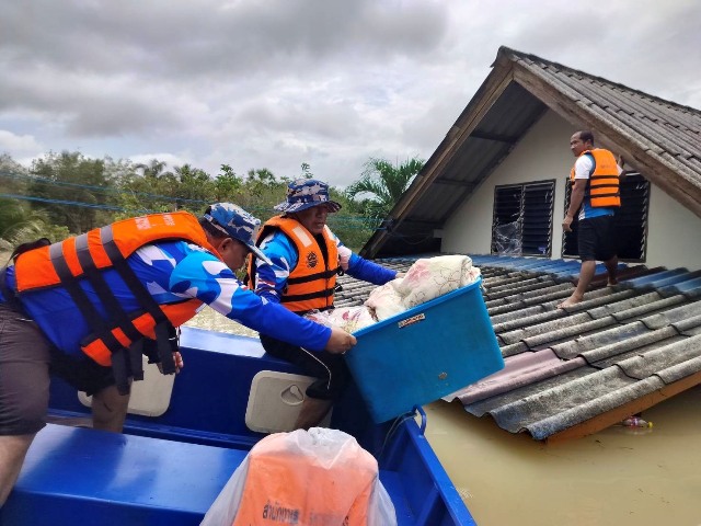 “สำหรับพื้นที่ที่ยังคงมีน้ำท่วมสูง เรือ ทส. ที่ระดมลงไปช่วยพี่น้องประชาชนในช่วงน้ำท่วมสูง ยังคงประจำการอยู่ในพื้นที่รวม 47 ลำ รวมถึงเฮลิคอปเตอร์ ของ ทส. (ฮ.ทส.) จำนวน 3 ลำ และเครื่องบินปีกตรึง อีกจำนวน 1 ลำ ยังคงประจำการอยู่ในพื้นที่เพื่อช่วยเหลือภารกิจในการบินสำรวจสถานการณ์ ขนย้ายผู้ป่วยและสิ่งของในกรณีฉุกเฉิน หรือเข้าถึงพื้นที่ได้ยาก และเมื่อวานนี้ (28 พ.ย. 68) ตลอดทั้งวัน ฮ.ทส. ยังคงปฏิบัติภารกิจสนับสนุนการบินลำเลียงอาหารและน้ำดื่ม เข้าไปส่งให้พี่น้องประชาชนในพื้นที่ เขต 8 และคอนโดพัฒนา รวม 4 เที่ยวบิน และบินสำรวจพื้นที่ที่ยังไม่ได้รับการช่วยเหลือทางด้านทิศตะวันตกเฉียงเหนือ รวมระยะทาง 8 กิโลเมตร บินสำรวจสถานการณ์พื้นที่รับน้ำ อ.สทิงพระ อ.สิงหนคร อ.กระแสสินธุ์ อ.ระโนด จ.สงขลา และบริเวณทะเลหลวง รวม 4 เที่ยวบิน รวมถึงเครื่องบินปีกตรึง ทส. ยังได้ช่วยสนับสนุนการลำเลียงสิ่งของเครื่องใช้จำเป็น เช่น นมผง ผ้าอ้อม ผ้าอนามัย ของใช้ประจำวัน น้ำหนักรวม 600 กิโลกรัม จากกองการบินตำรวจ ไปส่งยังสนามบินหาดใหญ่ จำนวน 1 เที่ยวบิน อีกด้วย“ นายพิรุณ กล่าว