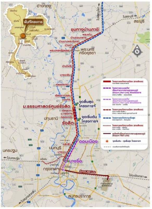 โครงการระบบรถไฟชานเมืองสายสีแดงเข้ม ช่วงรังสิต-มหาวิทยาลัยธรรมศาสตร์ ศูนย์รังสิต ครม. มีมติเมื่อวันที่ 7 มกราคม 2568 อนุมัติให้การรถไฟฯ ปรับกรอบวงเงินโครงการฯ เป็นเงินจำนวน 6,473.98 ล้านบาท (ลดลง 96.42 ล้านบาท) ระยะเวลาก่อสร้าง 36 เดือน ระยะทางโครงการฯ 8.84 กม. ลักษณะโครงสร้างทางเป็นทางระดับดินทั้งหมด ก่อสร้างทางใหม่ 2 ทาง ความกว้างราง 1.00 เมตร มีสถานี 4 แห่ง ประกอบด้วย สถานีคลองหนึ่ง สถานีมหาวิทยาลัยกรุงเทพ สถานีเชียงราก และสถานีมหาวิทยาลัยธรรมศาสตร์ ศูนย์รังสิต สำหรับพื้นที่ก่อสร้างส่วนใหญ่อยู่ในเขตที่ดินของการรถไฟฯ และมีพื้นที่ที่ต้องเวนคืนเพิ่มเติมบางส่วนเพื่อก่อสร้างสถานีและถนนทางเข้า-ออกบริเวณสถานี รวมพื้นที่เวนคืนประมาณ 14 ไร่ ขณะนี้อยู่ระหว่างการขอออกพระราชกฤษฎีกาเวนคืนที่ดินฯ โดยคาดว่าจะประกาศใช้ในราชกิจจานุเบกษาได้ภายในเดือน กุมภาพันธ์ 2569