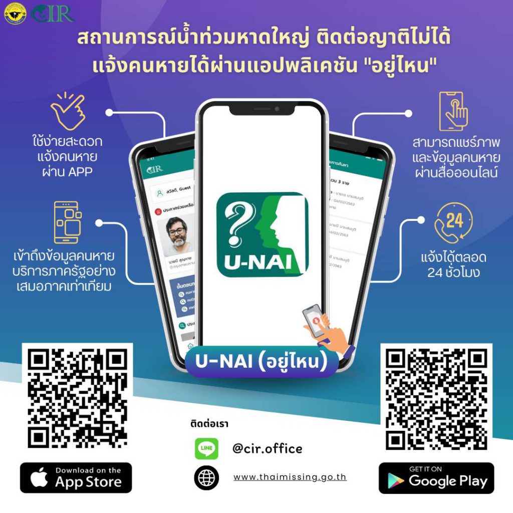 ขอให้ประชาชนใช้แอปพลิเคชัน “อยู่ไหน (U-NAI)” เพื่อแจ้งเหตุและติดตามข้อมูลได้อย่างสะดวกรวดเร็ว