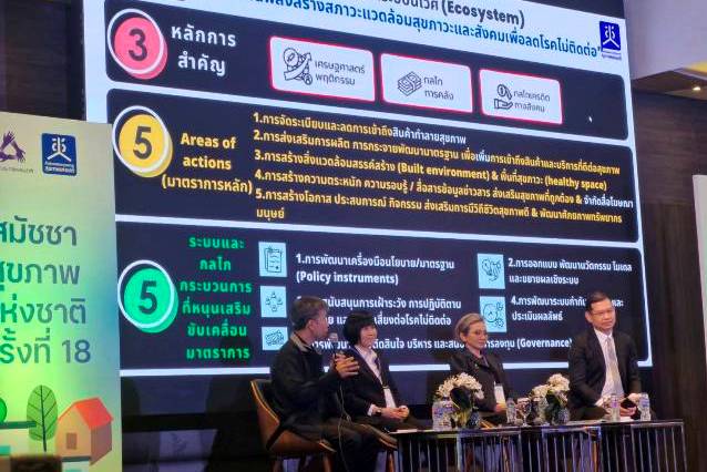 เวทีเสวนาหัวข้อ NCDs EC Policy Win/Win ลดโรคไม่ติดต่อเรื้อรัง (NCDs) กับภาคธุรกิจเอกชนและวัยทำงาน เชื่อมโยงกับเศรษฐกิจ-แรงงาน-สุขภาพ-แรงจูงใจ-นวัตกรรมองค์กร ภายในงานสมัชชาสุขภาพแห่งชาติ ครั้งที่ 18 ซึ่งจัดขึ้นระหว่างวันที่ 27-28 พ.ย. 2567 ในประเด็นหลัก “เศรษฐกิจยุคใหม่ สร้างสุขภาวะไทยยั่งยืน” ได้ฉายภาพการทำงานขององค์กรเอกชน เพื่อลดปัญหา NCDs และสร้างสุขภาพดีให้กับพนักงานผ่านการสร้างระบบนิเวศดีอย่างเป็นระบบ