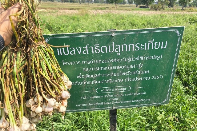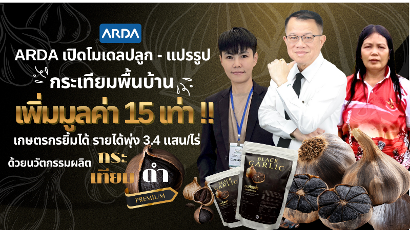 ปัญหาราคากระเทียมตกต่ำที่เกษตรกรไทยต้องเผชิญตลอดหลายปีกำลังมีทางออกใหม่ เมื่อสำนักงานพัฒนาการวิจัยการเกษตร (องค์การมหาชน) หรือ ARDA จับมือมหาวิทยาลัยราชภัฏศรีสะเกษ เปิดตัวโมเดล “กระเทียมดำศรีสะเกษ” ยกระดับกระเทียมพื้นบ้านไทยสู่ผลิตภัณฑ์สุขภาพระดับพรีเมียม จากเดิมกระเทียมสดราคา 60–80 บาทต่อกิโลกรัม สู่ผลิตภัณฑ์กระเทียมดำที่มีราคาจำหน่ายพุ่งสูงถึง 2,000–3,000 บาทต่อกิโลกรัม เพิ่มมูลค่ามากกว่า 15 เท่า สร้างรายได้ให้เกษตรกรสูงสุดถึง 340,000 บาทต่อไร่