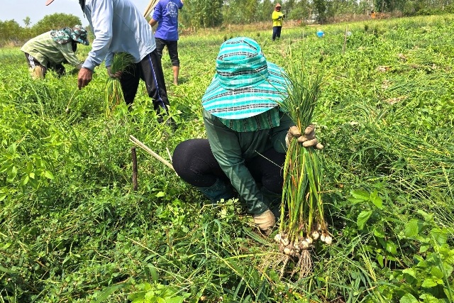 คุณวิลาวัณย์ แก้วคำ ประธานวิสาหกิจชุมชนกลุ่มออมทรัพย์พัฒนาสตรี หมู่ 6 ให้สัมภาษณ์เพิ่มเติมว่า เดิมปลูกกระเทียมมานานกว่า 30 ปี บนพื้นที่ 2 ไร่ ต้องเผชิญกับปัญหาสภาพอากาศที่แปรปรวน และขาดองค์ความรู้ด้านการปลูกแบบถูกวิธี ทำให้ผลผลิตค่อนข้างน้อย เก็บได้เพียง 300 กิโลกรัมต่อไร่ ขายได้เพียง 24,000 บาทต่อปี หักต้นทุน10,000 บาทแล้วแทบไม่เหลืออะไร จึงรวมกลุ่มกับชาวบ้านก่อตั้ง “วิสาหกิจชุมชนกลุ่มออมทรัพย์พัฒนาสตรีบ้านเมืองแสน หมู่ 6” มีสมาชิก 13 คน พื้นที่ปลูกรวม 10 ไร่ และได้เข้าร่วมโครงการวิจัยของ ARDA