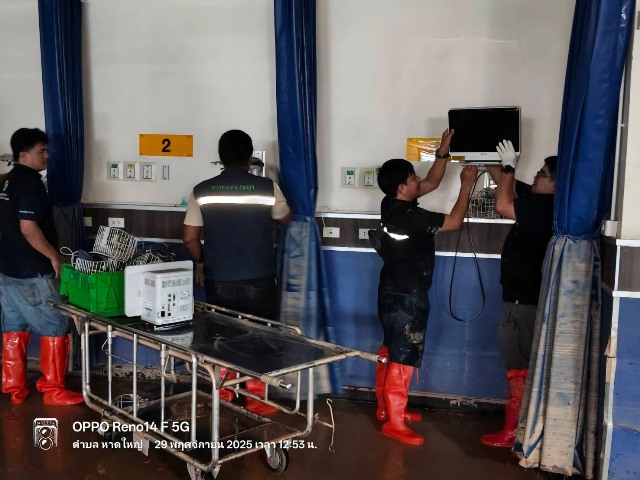 นายแพทย์ภูวเดช สุระโคตร  อธิบดีกรม สบส. กล่าวว่า ภายหลังสถานการณ์อุทกภัยในพื้นที่จังหวัดสงขลา เริ่มคลี่คลายลง  รัฐมนตรีว่าการกระทรวงสาธารณสุข นายพัฒนา พร้อมพัฒน์ ได้ให้ความสำคัญต่อการให้ความช่วยเหลือพี่น้องประชาชนในพื้นที่ให้สามารถกลับมาใช้ชีวิตได้ตามปกติโดยเร็วที่สุด  ซึ่งการจะช่วยเหลือพี่น้องประชาชนในเบื้องต้นนั้นระบบบริการทางการแพทย์เป็นสิ่งที่ขาดไปมิได้ โดยเฉพาะในสถานการณ์ฉุกเฉินเช่นนี้ ที่พี่น้องประชาชนเกิดการเจ็บป่วยจากการประสบเหตุอุกทกภัย บางรายขาดการพบแพทย์ตามกำหนด หรือขาดการรับยาโรคประจำตัว กรม สบส. จึงสั่งการทีม MSERT จากกองวิศวกรรมการแพทย์ กองแบบแผน ศูนย์สนับสนุนบริการสุขภาพที่ 1 – 12 ลงสำรวจพื้นที่ภายหลังน้ำลด ตั้งแต่วันที่ 27 พฤศจิกายน 2568 ที่ผ่านมา โดยมุ่งเน้นความสำคัญในการฟื้นฟูระบบบริการทางการแพทย์ของโรงพยาบาลหาดใหญ่ เริ่มจากการตรวจสอบระบบแสงสว่าง ปลั๊กไฟ ก๊าซทางการแพทย์ เครื่องมือแพทย์ พร้อมติดตั้งระบบไฟฟ้าชั่วคราว และทดสอบระบบไฟฟ้าห้องฉุกเฉินเพื่อเตรียมความพร้อม ณ จุดใช้งานสำคัญของห้องฉุกเฉิน (ER) และแผนกผู้ป่วยนอก (OPD) ทำความสะอาดพื้นที่ ER เคลียร์พื้นที่ OPD และงานเวชกรรม เพื่อเตรียมความพร้อมสำหรับการฟื้นฟูบริการอย่างต่อเนื่อง โดยมีบุคลากรของกองทัพเรือร่วมสนับสนุนการดำเนินงานให้เป็นไปอย่างราบรื่น โดยในวันที่ 4 ธันวาคม 2568 นี้ ห้องฉุกเฉิน ห้องผู้ป่วยนอก และห้องผู้ป่วยวิกฤติ (ICU) ของโรงพยาบาลหาดใหญ่