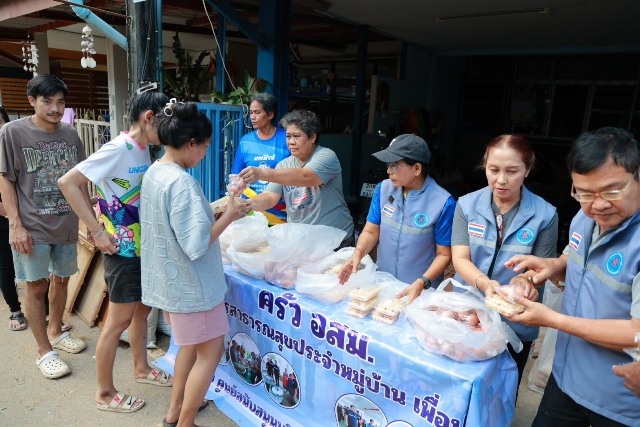 นายแพทย์ภูวเดช ฯ กล่าวเพิ่มเติมว่า การลงช่วยเหลือพี่น้องประชาชนจากเหตุอุกภัยในครั้งนี้ นอกจากจะมีบุคลากรสาธารณสุขของภาครัฐแล้ว ยังมีพลังของภาคประชาชนอย่างอาสาสมัครสาธารณสุขประจำหมู่บ้าน (อสม.) จังหวัดสงขลา ร่วมกับศูนย์สนับสนุนบริการสุขภาพที่ 12 จัดทำ “ครัว อสม. อาสาสมัครสาธารณสุขประจำหมู่บ้าน เพื่อประชาชน” เพื่อจัดเตรียมอาหารปรุงสุกและนำไปแจกจ่ายให้กับประชาชนที่ในพื้นที่อำเภอหาดใหญ่ จังหวัดสงขลา ซึ่งกรม สบส. คาดหวังว่าการดำเนินงานครั้งนี้เป็นการบรรเทาความเดือดร้อนเบื้องต้น และเป็นการสร้างขวัญกำลังใจให้แก่ประชาชนในพื้นที่ประสบภัยได้อีกทางหนึ่ง