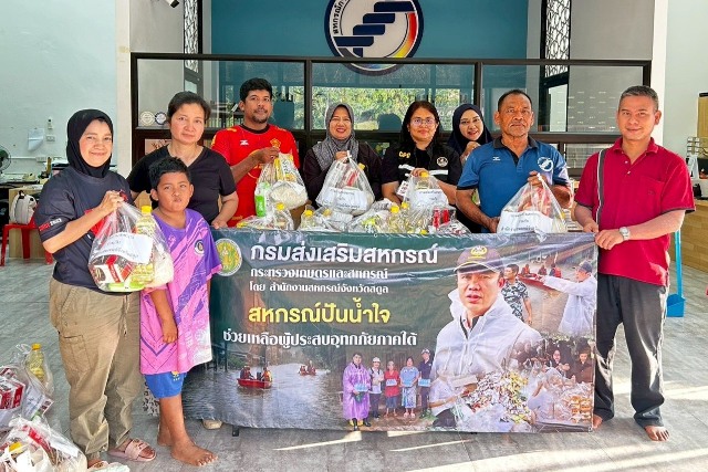 นายนิรันดร์ มูลธิดา อธิบดีกรมส่งเสริมสหกรณ์ เปิดเผยว่า กรมส่งเสริมสหกรณ์ได้ติดตามสถานการณ์อุทกภัยภาคใต้อย่างใกล้ชิด และได้สั่งการให้สหกรณ์จังหวัดภาคใต้ทั้ง 9 จังหวัดที่อยู่ในพื้นที่น้ำท่วมภาคใต้ ได้แก่ จังหวัดสงขลา สตูล นครศรีธรรมราช พัทลุง สุราษฎร์ธานี นราธิวาส ยะลา ปัตตานี และตรัง ลงพื้นที่ช่วยเหลือบรรเทาความเดือดร้อนให้กับสมาชิกสหกรณ์/กลุ่มเกษตรกรและประชาชนในพื้นที่น้ำท่วมอย่างต่อเนื่องตั้งแต่เกิดเหตุการณ์น้ำท่วมจนสถานการณ์คลี่คลายลง ทั้งการเปิดโรงครัวทำอาหารและข้าวกล่องแจกจ่ายให้กับผู้ประสบอุทกภัย การจัดสิ่งของเครื่องอุปโภคบริโภคใส่ถุงยังชีพเพื่อนำไปมอบให้กับสมาชิกสหกรณ์และกลุ่มเกษตรกรและชาวบ้านในพื้นที่น้ำท่วม รวมถึงการระดมความช่วยเหลือจากเครือข่ายสหกรณ์ในจังหวัดต่าง ๆ ทั้งภาคเหนือ ภาคกลาง และภาคตะวันออกเฉียงเหนือในการจัดส่งข้าวสาร นม ไข่ไก่ น้ำดื่ม และวัตถุดิบในการปรุงอาหาร เพื่อเร่งจัดส่งไปยังสหกรณ์ในพื้นที่ภาคใต้ได้นำไปกระจายแจกจ่ายให้กับประชาชนที่อยู่ในพื้นที่ประสบภัย
