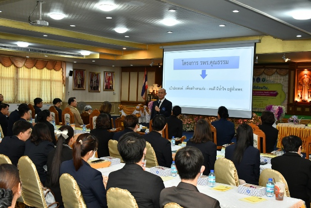องคมนตรี เปิดการประชุมเชิงปฏิบัติการ “การขับเคลื่อนโรงพยาบาลคุณธรรม สู่การปฏิบัติ” ที่ โรงพยาบาลสมเด็จพระยุพราชจอมบึง ต้นแบบโรงพยาบาลคุณธรรมของเขตสุขภาพที่ 5 ใช้กลยุทธ์ “การมีส่วนร่วมของทุกหัวใจในองค์กร” ขับเคลื่อนงาน ส่งผลการพัฒนาคุณภาพบริการ ผู้ป่วยได้รับบริการรวดเร็ว เกิดความพึงพอใจมากขึ้น บุคลากรเกิดความรักความผูกพัน