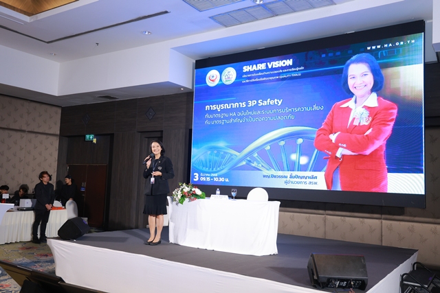 พญ.ปิยวรรณ ลิ้มปัญญาเลิศ ผู้อำนวยการสถาบันรับรองคุณภาพสถานพยาบาล บรรยาย ในการสัมมนา Share vision นโยบายการขับเคลื่อนด้านความปลอดภัย และการเรียนรู้กลไกและวิธีการใช้เครื่องมือพัฒนาคุณภาพ (Quality Tools) สำหรับสมาชิก 3P Safety Membership รูปแบบ Hybrid ระหว่างวันที่ 3 – 4 ธันวาคม 2568 ณ ห้องประชุมแซฟไฟร์ 204 อาคารอิมแพ็คฟอรั่ม ชั้น 2 ศูนย์แสดงสินค้าและการประชุมอิมแพ็ค เมืองทองธานี จังหวัดนนทบุรี