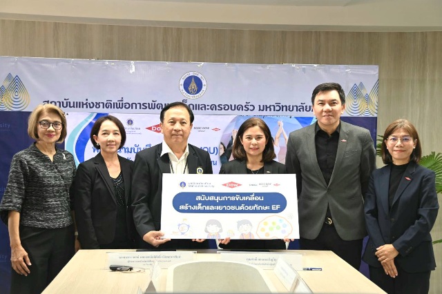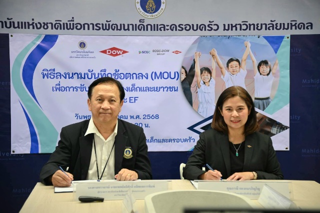 กรุงเทพฯ – 4 ธันวาคม 2568 – สถาบันแห่งชาติเพื่อการพัฒนาเด็กและครอบครัว มหาวิทยาลัยมหิดล และกลุ่มบริษัท ดาว ประเทศไทย (Dow) ร่วมลงนามบันทึกข้อตกลงความร่วมมือทางวิชาการ (MOU) เพื่อยกระดับการพัฒนาเด็กไทยผ่านทักษะสมอง Executive Functions (EF) ให้เกิดผลอย่างเป็นรูปธรรมในระดับประเทศ ซึ่งเป็นรากฐานสำคัญของการเรียนรู้ การคิดวิเคราะห์ การควบคุมตนเอง และความยืดหยุ่นในการเผชิญปัญหาในศตวรรษที่ 21 ณ สถาบันแห่งชาติเพื่อการพัฒนาเด็กและครอบครัว พร้อมถ่ายทอดสดผ่านระบบออนไลน์เพื่อเปิดพื้นที่ให้ครู ผู้ปกครอง นักวิชาการ และผู้ทำงานด้านเด็กทั่วประเทศร่วมรับฟังแนวทางความร่วมมือครั้งสำคัญนี้