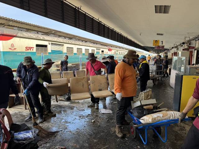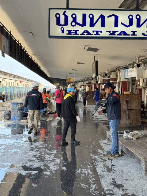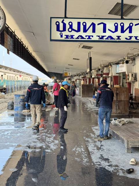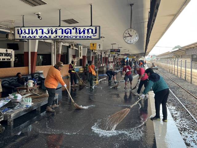 วันที่ 4 ธันวาคม 2568 การรถไฟแห่งประเทศไทย (รฟท.) ผนึกกำลังร่วมกับอาสาสมัครจิตอาสาจากเทศบาลนครหาดใหญ่ จัดกิจกรรม Big Cleaning Day ร่วมใจฟื้นฟูสถานีรถไฟหาดใหญ่ เพื่อถวายเป็นพระราชกุศลแด่พระบาทสมเด็จพระบรมชนกาธิเบศร มหาภูมิพลอดุลยเดชมหาราช บรมนาถบพิตร รัชกาลที่ 9 พร้อมเดินหน้าฟื้นฟูพื้นที่อย่างเต็มกำลัง เตรียมความพร้อมก่อนกลับมาเปิดให้บริการเดินรถถึงสถานีชุมทางหาดใหญ่ในวันที่ 7 ธันวาคม 2568