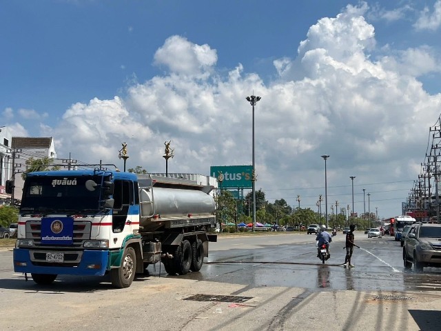 (2) งานฉีดล้างทำความสะอาดถนน เป็นระยะทาง 2,156 เมตร ระยะทางรวมสะสม ทั้งสิ้น 14,796 เมตร