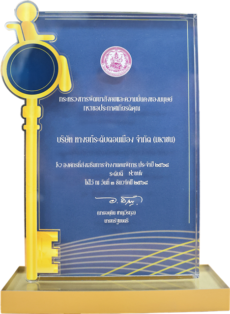 บริษัท ทางยกระดับดอนเมือง จำกัด (มหาชน) (DMT) เข้ารับประกาศเกียรติคุณรางวัล “องค์กรที่ส่งเสริมการจ้างงานคนพิการ ประจำปี 2568 “ ระดับดี ” จากกรมส่งเสริมและพัฒนาคุณภาพชีวิตคนพิการ ร่วมกับสมาคมคนพิการทุกประเภทแห่งประเทศไทย องค์กรคนพิการแต่ละประเภท และภาคีเครือข่าย ทุกภาคส่วน ซึ่งจัดขึ้นในงานวันคนพิการสากล ประจำปี 2568 เมื่อวันที่ 3 ธันวาคม 2568 ณ ห้องรอยัล จูบิลี บอลรูม อิมแพ็ค เมืองทองธานี จังหวัดนนทบุรี