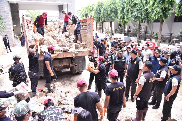 นายสุชาติ กล่าวว่า ที่ลงมาในวันนี้ เพื่อมาให้กำลังใจเจ้าหน้าที่ที่อยู่ช่วยเหลือพี่น้องประชาชนมาอย่างต่อเนื่อง ทั้งที่หลายคนก็เป็นผู้ประสบภัยเองด้วยเช่นกัน ต้องขอขอบคุณทีมเจ้าหน้าที่จากทุกหน่วยงานของ ทส. โดยเฉพาะทีมกรมทรัพยากรน้ำที่เข้ามาช่วยกู้ระบบประปาให้กับ รพ.หาดใหญ่ และทีมเฮลิคอปเตอร์ของ ทส. ที่ปรัยภารกิจจากการส่งเสบียงให้ รพ.หาดใหญ่ มาเป็นช่วยลำเลียงผู้ป่วยฉุกเฉิน กว่า 70 ราย และเครื่องกำเนิดไฟฟ้าจนช่วยกู้ระบบไฟฟ้าของ รพ.หาดใหญ่ และต้องขอบคุณบุคลากรทางการแพทย์ที่ช่วยดูแลผู้ป่วยอย่างเต็มที่ในช่วงภาวะวิกฤต โดยเฉพาะผู้ป่วยฉุกเฉินทั้งเด็กแรกเกิด และเด็กเล็ก หลังจากนี้ทีมเจ้าหน้าที่ของ ทส. ซึ่งมีทั้งเจ้าหน้าที่กรมอุทยานฯ และกรมป่าไม้ อยู่ด้วย ที่ยังคงมีภารกิจเฝ้าระวังไฟป่าอยู่อีกภารกิจหนึ่งในช่วงนี้ จะสลับสัยเปลี่ยนกำลังพลหมุนเวียนกันเข้ามาช่วยฟื้นฟู รพ.หาดใหญ่ ต่อไปจนกว่าจะกลับเข้าสู่ภาวะปกติโดยเร็วที่สุด