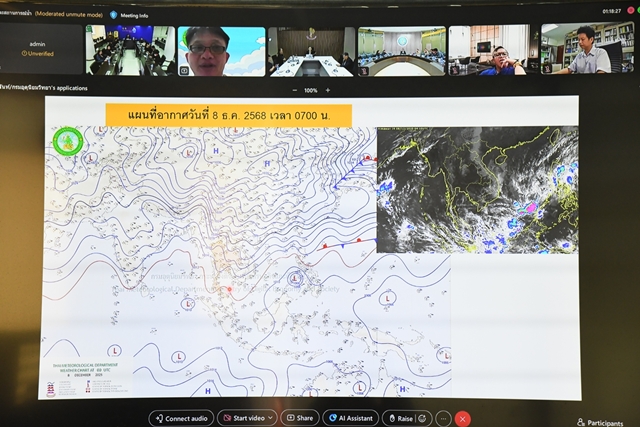 สทนช. หารือหน่วยงานเร่งเตรียมพร้อมรับมือฝนเพิ่มขึ้นในภาคใต้ช่วง 11–15 ธ.ค. เน้นเฝ้าระวัง นครศรีธรรมราช พัทลุง สงขลา ตรัง ปัตตานี ยะลา และนราธิวาส หากประเมินพบความเสี่ยงต่อชีวิตและทรัพย์สิน ต้องอพยพประชาชนออกจากพื้นที่ทันที