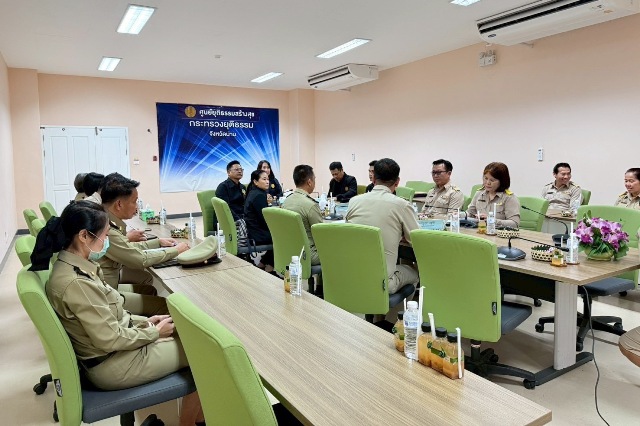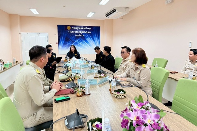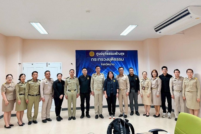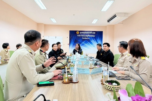 เมื่อวันจันทร์ที่ 8 ธันวาคม 2568 นางพงษ์สวาท นีละโยธิน ปลัดกระทรวงยุติธรรม พร้อมด้วยนายวัลลภ นาคบัว ที่ปรึกษาปลัดกระทรวงยุติธรรม และโฆษกกระทรวงยุติธรรม นายสุริยพงศ์ ทับทิมแท้ ผู้อำนวยการสถาบันอนุญาโตตุลาการ และรองโฆษกกระทรวงยุติธรรม และคณะ ลงพื้นที่ตรวจเยี่ยมหน่วยงานในสังกัดกระทรวงยุติธรรมในพื้นที่จังหวัดน่าน โดยได้ประชุมร่วมกับหัวหน้าหน่วยงานในสังกัดกระทรวงยุติธรรมในพื้นที่จังหวัดน่าน ณ อาคารบูรณาการกระทรวงยุติธรรมจังหวัดน่าน อำเภอเมืองน่าน จังหวัดน่าน