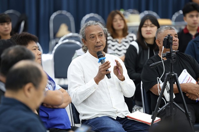 ขณะที่ นายไมตรี จงไกรจักร์ ผู้จัดการมูลนิธิชุมชนไท และ คสช.เขตพื้นที่ 11 กล่าวว่า เวทีถอดบทเรียนที่เกิดขึ้นแม้จะพูดกันอยู่ซ้ำๆ ทุกปี แต่จะมีหน้าที่ในการช่วยกระตุ้นเตือนสังคม ทักท้วงรัฐบาล ซึ่งความรู้และข้อเสนอที่เกิดขึ้นอาจไม่มีทางนำไปสู่การปฏิบัติได้ หากเราไม่ลงมือไปทำด้วยกัน จึงเป็นโจทย์สำคัญที่นอกจากเสนอให้รัฐบาลทำแล้ว เวทีวันนี้เราจะมาช่วยกันออกแบบว่าข้อเสนอที่มีอยู่เราจะมาขับเคลื่อนไปร่วมกันได้อย่างไร ขณะเดียวกันการเข้าไปเตรียมความพร้อมชุมชนให้รับมือภัยพิบัติ หากจะรอให้ฟื้นฟูเสร็จก่อนแล้วค่อยทำอาจจะยาก เพราะชาวบ้านก็เตรียมกลับไปทำมาหากินแล้ว ฉะนั้นเราจึงชักชวนภาคีทั้งหมดมาร่วมกันทำควบคู่กันไปทั้งสามระยะ ด้วยวิธีนี้จะช่วยพลิกวิกฤตไปสู่โอกาสใหม่ได้