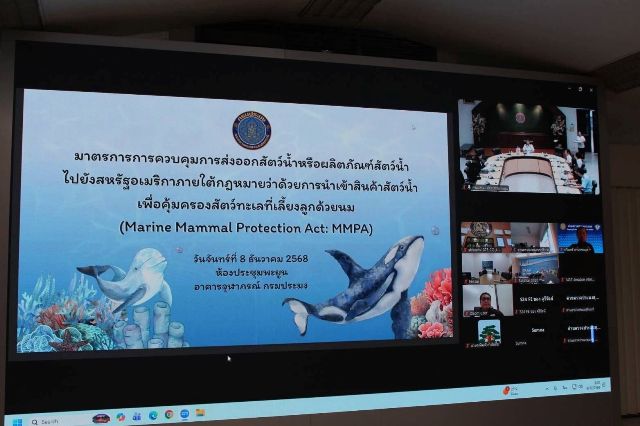 เมื่อวันที่ 8 ธันวาคม 2568 กรมประมง..จัดประชุมเร่งทำความเข้าใจผู้ประกอบการภาคประมงไทย ในการเตรียมความพร้อมเพื่อรองรับการส่งออกสินค้าและผลิตภัณฑ์สัตว์น้ำไปยังตลาดสหรัฐอเมริกา ก่อนกฎหมาย MMPA จะมีผลบังคับใช้ในวันที่ 1 มกราคม 2569 นี้ ณ ห้องประชุมพะยูน กรมประมง และผ่านระบบการประชุมออนไลน์ Zoom Cloud Meetings โดยมีผู้แทนจากสมาคมอาหารแช่เยือกแข็งไทย สมาคมอุตสาหกรรมทูน่าไทย และผู้ประกอบการนำเข้า – ส่งออกสินค้าประมง และเจ้าหน้าที่กรมประมงจากหน่วยงานที่เกี่ยวข้อง เข้าร่วมการประชุมกว่า 500 ราย