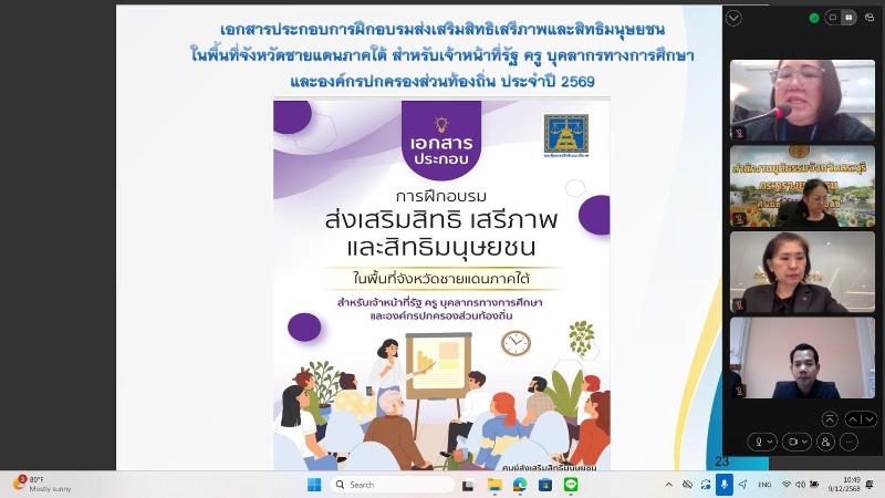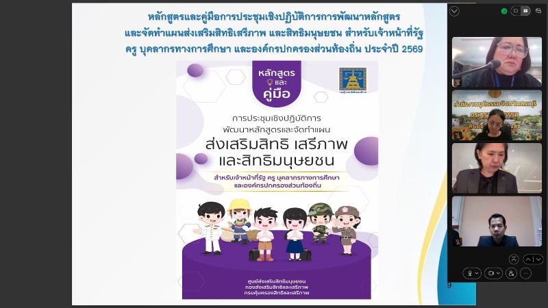 วันอังคารที่ 9 ธันวาคม 2569 เวลา 10.00 น. ณ ห้องประชุมกระทรวงยุติธรรม 7-01 ชั้น 7 นางสาวดวงดาว เกียรติพิศาลสกุล รองอธิบดีกรมคุ้มครองสิทธิและเสรีภาพ เป็นประธานเปิดการประชุมชี้แจงและซักซ้อมความเข้าใจ การจัดกิจกรรมการประชุมเชิงปฏิบัติการพัฒนาหลักสูตรและจัดทำแผนส่งเสริมสิทธิเสรีภาพและสิทธิมนุษยชน ภายใต้โครงการเสริมสร้างความเข้มแข็งด้านสิทธิมนุษยชน และการอบรมส่งเสริมสิทธิเสรีภาพและสิทธิมนุษยชนในพื้นที่จังหวัดชายแดนภาคใต้ ภายใต้โครงการ “เสริมสร้างความเข้มแข็งด้านสิทธิมนุษยชนเพื่อสร้างสังคมสันติสุขในพื้นที่จังหวัดชายแดนภาคใต้” ประจำปีงบประมาณ พ.ศ. 2569 ผ่านแอปพลิเคชั่น Cisco Webex Meetings พร้อมด้วย ดร. เปรมยุดา ตันติกนกพร ผู้อำนวยการกองส่งเสริมสิทธิและเสรีภาพ นางสาวขนิษฐา เลาหศิรินาถ หัวหน้าศูนย์ส่งเสริมสิทธิมนุษยชน และเจ้าหน้าที่ศูนย์ส่งเสริมสิทธิมนุษยชน