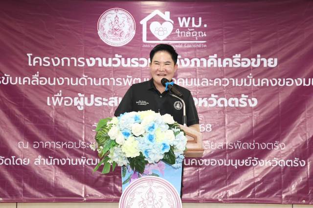 นายอัครา กล่าวว่า โครงการงานวันรวมพลังภาคีเครือข่ายในการขับเคลื่อนงานด้านการพัฒนาสังคมและความมั่นคงของมนุษย์เพื่อผู้ประสบอุทกภัยจังหวัดตรัง นั้น เป็นงานที่สะท้อนให้เห็นถึงพลังการบูรณาการความร่วมมือของทุกภาคส่วนของจังหวัดตรัง ที่พร้อมยืนเคียงข้างพี่น้องประชาชนในยามยากลำบาก ซึ่งจังหวัดตรังต้องเผชิญสถานการณ์อุทกภัยที่ส่งผลกระทบต่อครัวเรือนเปราะบาง ทั้งด้านรายได้ ความเป็นอยู่ สุขภาพจิต และความปลอดภัย ดังนั้น กระทรวง พม. มีความห่วงใยและความมุ่งมั่นที่จะทำงานเชิงรุก รวดเร็ว พร้อมเข้าถึงประชาชนทุกกลุ่มเป้าหมาย โดยเฉพาะกลุ่มเปราะบาง ให้มากที่สุด ภายใต้นโยบาย “พม.ใกล้คุณ” ลดรายจ่าย เพิ่มรายได้ รีสตาร์ทชีวิต รวมถึงการพัฒนาคนทำงานเพื่อสังคม