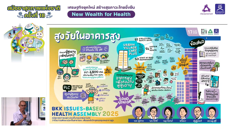 กิจกรรมตลาดนัดนโยบาย ที่จัดขึ้นภายในการประชุมสมัชชาสุขภาพแห่งชาติ ครั้งที่ 18 พ.ศ. 2568 โดยสำนักงานคณะกรรมการสุขภาพแห่งชาติ (สช.) ร่วมกับภาคีเครือข่ายยุทธศาสตร์ ระหว่างวันที่ 27-28 พ.ย. 2568 ณ อาคารอิมแพ็ค ฟอรั่ม เมืองทองธานี ช่วงหนึ่งได้มีการจัดเวทีเปลี่ยนมุมมอง (Policy Talk of Change) หัวข้อ “ระบบรองรับวิกฤตในอาคารสูง” ซึ่งเป็นการพูดคุยถึงกระบวนการพัฒนานโยบายสาธารณะ ภายหลังเหตุการณ์แผ่นดินไหวกรุงเทพมหานคร (กทม.) จนเป็นเหตุให้มีอาคารสูงถล่มเมื่อวันที่ 28 มี.ค. 2568