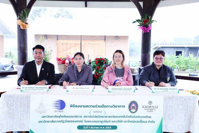 กระทรวงการอุดมศึกษา วิทยาศาสตร์ วิจัยและนวัตกรรม (อว.) โดย สถาบันวิจัยวิทยาศาสตร์และเทคโนโลยีแห่งประเทศไทย (วว.) ร่วมมือทางวิชาการกับภาคีเครือข่าย มหาวิทยาลัยสุโขทัยธรรมาธิราช (มสธ.) มหาวิทยาลัยราชภัฎวไลยอลงกรณ์ ในพระบรมราชูปถัมภ์ (มรวอ.) และบริษัทเขาใหญ่แฮปปี้เนส จำกัด โดยมีระยะเวลาดำเนินการ 5 ปี มุ่งดำเนินงานให้เกิดความยั่งยืน สร้างความเป็นอยู่ที่ดีให้กับเกษตรกรและชุมชน พร้อมทั้งเพิ่มขีดความสามารถการแข่งขันด้านเศรษฐกิจของประเทศ โดยคำนึงถึงผลกระทบทางสังคมและสิ่งแวดล้อม เป็นสำคัญ ในวันที่ 9 ธันวาคม 2568 ณ อำเภอปากช่อง จังหวัดนครราชสีมา