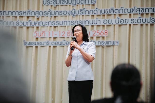ในปีงบประมาณ พ.ศ. 2569 อย. ได้ระดมเครือข่ายครูแกนนำ อย.น้อย กว่า 200 คนจากทั่วประเทศเข้าร่วมการอบรมเชิงปฏิบัติการการบูรณาการหลักสูตรคุ้มครองผู้บริโภค ซึ่งประกอบด้วยกิจกรรมที่สำคัญ คือ “การผลิตสื่อสร้างความรอบรู้ด้านผลิตภัณฑ์สุขภาพด้วยเทคนิค AI” ซึ่งเป็นทักษะใหม่ที่จำเป็นในยุคดิจิทัล เพื่อให้สื่อด้านสุขภาพดึงดูดความสนใจ เข้าใจง่าย เหมาะกับพฤติกรรมการรับข้อมูลของคนยุคใหม่ และนำไปใช้ในโรงเรียนและชุมชนได้อย่างมีประสิทธิภาพ ตลอดจนแลกเปลี่ยนเรียนรู้ผลงาน Best of the Best เพื่อเป็นตัวอย่างนำไปปรับใช้ตามบริบทของแต่ละพื้นที่ นอกจากนี้ ยังมีพิธี มอบโล่เชิดชูเกียรติแก่ครูแกนนำ อย.น้อย ผู้เกษียณอายุราชการ เพื่อยกย่องความทุ่มเทในการขับเคลื่อนงาน อย.น้อย มาโดยตลอด ซึ่งมีส่วนสำคัญต่อการสร้างเยาวชนไทยให้มีทักษะรอบรู้ด้านสุขภาพ