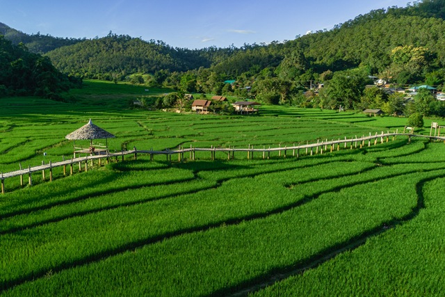 นายบุญอนันต์ เหล่อโพ ผู้ประสานงานเครือข่ายวิสาหกิจชุมชนบ้านแพมบก เล่าว่า บ้านแพมบก อำเภอปาย จังหวัดแม่ฮ่องสอน ได้พัฒนาการท่องเที่ยวเชิงเกษตรจนกลายเป็นจุดหมายปลายทางสำคัญของนักท่องเที่ยวไทยและต่างชาติ โดยมีสะพานโขกู้โส่ หรือสะพานบุญไม้ไผ่ ซึ่งได้รับแรงบันดาลใจจากสะพานซูตองเป้ เป็นต้นแบบของการท่องเที่ยวเชิงวัฒนธรรมที่ผสานธรรมชาติ เด่นด้วยทุ่งนา ภูเขา และบรรยากาศหมอกในฤดูหนาว ที่กลายเป็นจุดเช็กอินยอดนิยม โดยเฉพาะช่วงฤดูฝนถึงฤดูหนาวที่กินระยะยาวนานกว่า 8 เดือนต่อปี