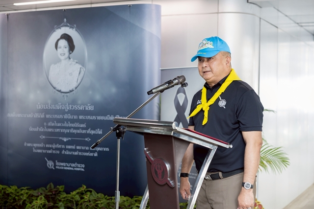 โดยประธานในพิธี ได้นำผู้เข้าร่วมกิจกรรมถวายความเคารพ เบื้องหน้าพระฉายาลักษณ์สมเด็จพระนางเจ้าสิริกิติ์ พระบรมราชินีนาถ พระบรมราชชนนีพันปีหลวง และยืนสงบนิ่ง 93 วินาที เพื่อน้อมถวายความอาลัย และผู้แทนจากทุกหน่วยงานที่เข้าร่วมกิจกรรม ได้ร่วมกันเดินแจกโบว์สีดำให้กับบุคลากรของโรงพยาบาลตำรวจ รวมถึงประชาชนที่ใช้เส้นทางบริเวณทางเชื่อมรถไฟฟ้า เพื่อแสดงออกถึงความจงรักภักดีและสำนึกในพระมหากรุณาธิคุณอันหาที่สุดมิได้ ซึ่งได้รับความสนใจจากประชาชนเป็นอย่างมาก