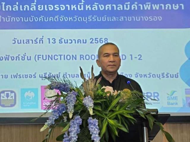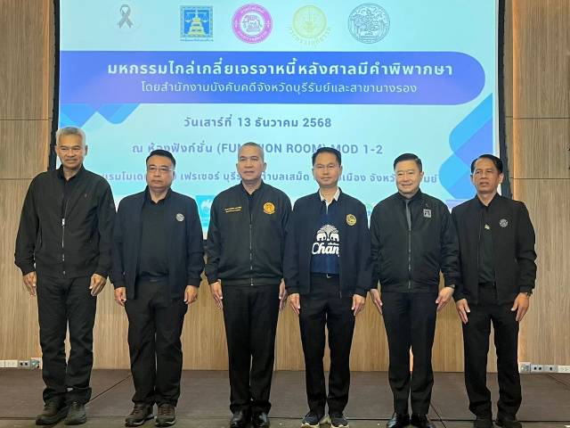 วันเสาร์ที่ 13 ธันวาคม 2568 ณ โรงแรมโมเดนา บาย เฟรเซอร์ จังหวัดบุรีรัมย์ พลตำรวจโท รุทธพล เนาวรัตน์ รัฐมนตรีว่าการกระทรวงยุติธรรม ประธานในพิธีเปิดการจัดงาน“มหกรรมไกล่เกลี่ยเจรจาหนี้ก่อนฟ้องและหนี้หลังศาลมีคำพิพากษา” ซึ่งจัดโดย กรมคุ้มครองสิทธิและเสรีภาพ ร่วมกับ กรมบังคับคดี โดยมี นายไตรยฤทธิ์ เตมหิวงศ์ อธิบดีกรมคุ้มครองสิทธิและเสรีภาพพร้อมด้วย ดร. ธปภัค บูรณะสิงห์ ผู้อำนวยการกองส่งเสริมการระงับข้อพิพาท ร่วมเป็นเกียรติในงาน และมี นายปิยะ ปิจนำ ผู้ว่าราชการจังหวัดบุรีรัมย์ กล่าวต้อนรับ นายเสกสรร สุขแสง อธิบดีกรมบังคับคดี กล่าวรายงาน